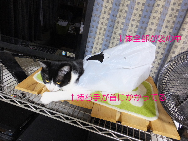 と、新月サンとリビングに行ってみたら、いち之助が こんな状態。 ワイヤーラックの下で、でん助が不思議そーな顔してみてましたよ。