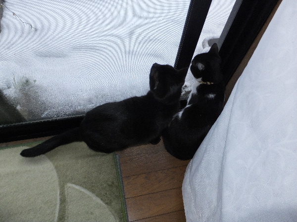 私よりも驚いて(?)いたのはチビにゃずで、換気で少し開けておいた窓に張り付いてずーっと外を見ていましたヨ。