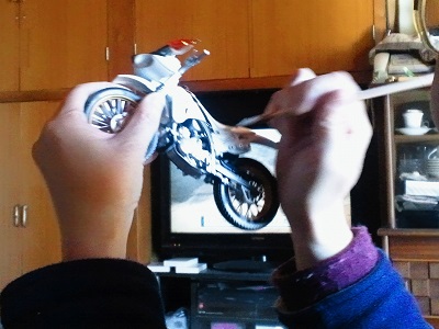 出逢ってン十年のつき合いで、そんなことを言いだすのはもちろん初めてなので、こっちはもうびっくりぽんです。試しにやらせてみると、細いストライプのモールドからは確かにはみ出しません。が、習熟度はゼロですから滑らかには塗れない。
