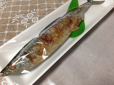 食事の配膳の最中、台所にどういうわけかサンマが1尾。なんで1尾?