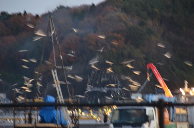 宮古港しかしここで夜明かし待機していると、漁船が出ていくときなんかもう「ミャーミャー」「ニャーニャー」おびただしい数の鳴き声と羽ばたきが乱舞するのを見かけています。