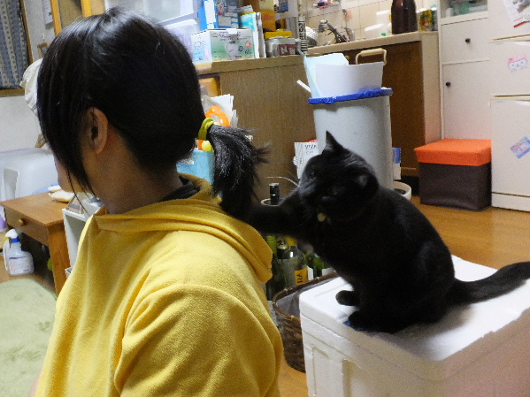 頭を動かす度にフルフル揺れる髪の毛がねこじゃらしになってたようです(笑)
