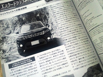 というESCLEV側の試走は今号のスーパースージーに間に合いませんでしたので、7月に出る095号に持ち越して、今号は まだ真っ新の四代目エスクードをいち早く乗り出してくれたcyber-Kさんの寄稿を掲載してもらいました。プロの物書きではない人に頼んでの第一インプレッションなので、伝わりきらないこともありますが、乗っている人でなければ評価というものは下せないものです。