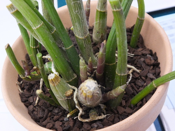 実家の庭に放置されて枯れかけていたデンドロ。結構な大鉢だったので、母が持て余してたらしいです。
