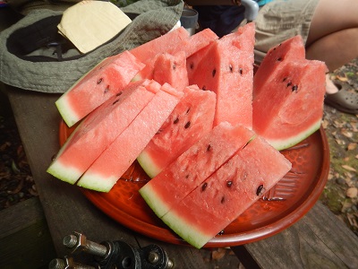 暑気払い3b集まってくれた面々は、肉とそばとスイカをほおばりながら、例によってエスクードの足回り変更についてそれぞれの考察を交わし、パーツの流通情報を出し合い、ほんとに毎度毎度なぜその話題で盛り上がれる? という賑わいです。