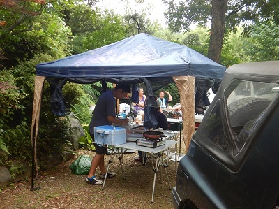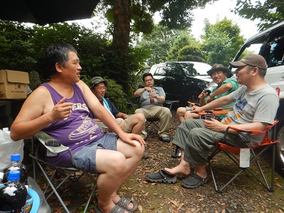 暑気払い0先日のFレイドからTD94Wに乗り換えたs.Dоさんに続き、TD54Wにスイッチしたkawaさん、狼駄さんのTDA4Wを縦列させ、その両奥にSIDEKICKさんのTD62W、青影さんのTD61Wが詰め込まれ、風の通り道はいつもより狭まり、わたしゃ若干熱中症ぎみ。こんなことだったらうちの幌エスクも追い出して車庫を空にすればよかった。その辺の采配は後の祭りで、肉を焼くなら狼駄さん、焼きそばだったら青影さんだと作業を丸投げし、焼肉とサイコロステーキと焼きそばとスイカの波状攻撃を開始します。