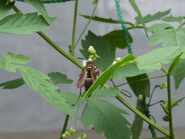 もぉすでに、我が家の常連さんであるアシナガバチ。