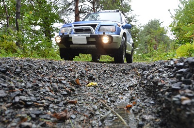 凝りもせず周辺の林道に少し分け入ってみましたが、夏の名残で藪気味のうえ今までフラットだった区間も雨の流水で削られています。星座の森で聞いた話だと、遠野側に降りていくルートは冬に降った雪が圧力をかけ道路の陥没があるとのこと。補修されていないため腕試しに行ってしまった車を何台もレスキューに出たそうです。昔の荒れたた林道に戻りつつあるなあ。