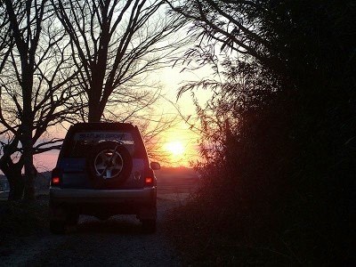 昨日。新月サンの忘れ物を持って、お客さんの近くまで走ったんですが、夕陽がすごく眩しくて。