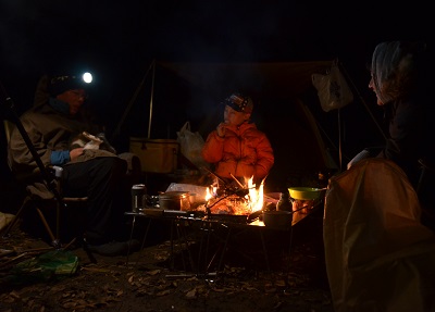 テニスコートとかサッカーコートとかじゃなくて、通勤用のコートです。しかもことし初めて袖を通したのだけれど、仕事に出かけた後の帰り際に合流したキャンプ場で。例によって背広にネクタイでキャンプ参加です。その日の朝や日中には、仙台でも福島でもコートは必要ありませんでしたが、那珂川沿いのあのキャンプ場にたどり着いたのは日が暮れてからで、外気温度が5℃まで下がっていました。河川敷なので風も冷たいのです。ある御夫人には「こんな時期に河原泊まりなんて馬鹿じゃないの?」と言われてしまってます。