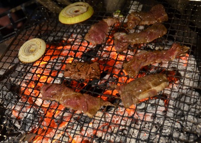 焼いてみました。適度にあぶって食ってみると、実に柔らかい。どうやらこれに使われた玉ねぎの成分で肉質がそうなったようです。おぉ、名付けて「たまねぎまみれ」の挑戦か!(と、狼駄さんの意欲を高揚させてくれと頼まれたんだけど、実際にこれ、美味いんだよ)