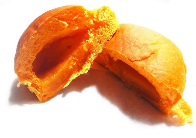 パッケージを開けた途端に広がるみかんの香りだけでも、ファンの人々は「しあわせ」を感じるそうです。収穫シーズン前に青摘みされ間引きされたみかんを使って、皮というか生地そのものにみかん果汁を練りこみ、中身の白あんにも果汁を加えた、みかん味あんパン。
