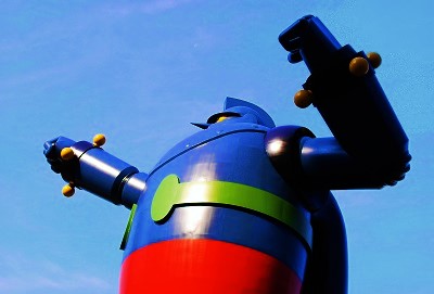 神戸市の鉄人28号も佇み続けて傷みが出たとかで、補修と塗り直しが行われ、従前のくすんだ青から鮮やかな色調へ化粧直しされました。以前のやつもブリキ感・・・失礼、鋼鉄っぽくてスケールにもマッチしていて良かったと思いますが、なんでだろうと思ってみれば、今度の塗装は原作色に近づけたことで漫画っぽく感じてしまうからなのかもしれません。あのくすみっぷり(ウェザリング、とはちょっと違う)は、あれはあれでけっこうリアルな巨大さを表現していたのです。