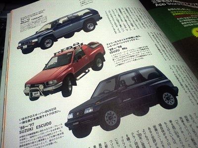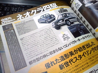 同企画の最後のページに、我らがエスクードもグランドチェロキーと同居の2分の1ページだけのっけっているわけですが、こっちはこっちでなんだかもう、ネオなんて冠をつけてもらいたくない気分です。それじゃあエスクードの世代がクラシックなのかというと、そう簡単にはいかない四駆の黎明期から80年代あたりにかけての質実剛健な車体骨格とは一線を画して・・・いや画されてしまいます。この程度の扱いなら、最初から外してくれた方が潔い。そうでないならもちっと厚遇してくださいな。です。