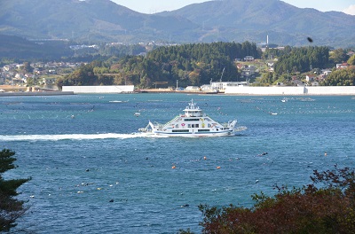 気仙沼市にはいくつかの離島があり、その最たるものが大島。約3000人が住む、東北地方にある最大の島で、本土とはわずか300~400mしか離れていませんが、定期便のフェリーでなければ行き来ができないところです。