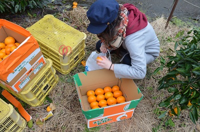 ただ一人、霙だけがよそとは真逆のコンセプトで箱詰め。でもこれでも三層重ねていって15キロ近く収穫してました(もちろん最下位)。しかし全員でよってたかってもぎ取ったのが210キロくらい。300が和邇さんの目標だったらしく、