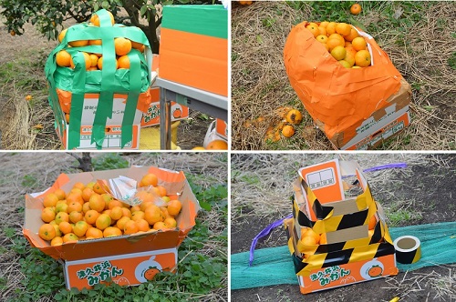 と、ペイロードを増やすため箱をこんなにしてしまう白熱の戦い。あまりの気迫に、他の一般のお客さんがびびって、彼らのいるみかんの木には近寄れなくなるという、それかえって逆効果じゃないのか?な「みかん狩り」が繰り広げられました。左上が優勝したAMGさん親子の40キロ越え。それ以外の箱パフォーマンスも痛快です。