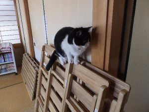 この後居なくなる(私がね。この日は仕事の土曜だったので)けど、いちの事だからまた登るよなー・・・と思って畳の上に寝せました。