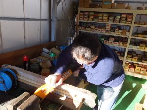 新月サン張り切って板のワックスがけ。