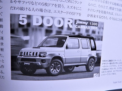 これを量販車テイストにアレンジしたものが、二階堂裕さんのコラム欄にも掲載されていて、所得の上がった現在のオーストラリアではジムニーがコンパクトすぎて不人気ゆえ、1300クラスの5ドアが必要と唱えられています。やはり福永さんの提案デザイン。