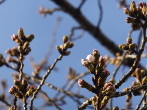 暖かい日が続いたからか近所の桜、蕾が急にふくらみました。