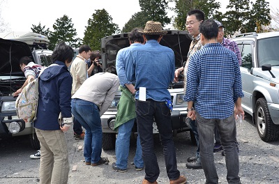 四基目のエンジンが損傷して45万7000キロで止まってしまったしろくまさんのエスクードに、電光石火の速さで代替エンジンを提供してくださったAМGさんは、この日初めて会いまみえることとなりました。あっ、車両だけを撮り忘れたのでよく見えません(笑) しかししろくまさんは山形からの日帰りで駆け付け、元気に走るエスクードの姿を披露してくれました。隣にあるkazooさんのレバンテは、フェンダーミラーというお茶目ぶりです。