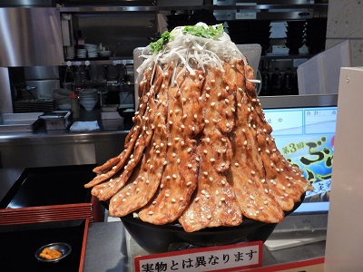 友部下りのもうひとつ。腹八分目どころかこれは絶対に誇大広告だろうと苦笑したのが、売れ線で出ている豚丼の最上位にあたる「筑波山」の見本。肉八枚乗せの大盛りの上を行く十六枚だそうです。いやこれはもう筑波山どころか八溝山だよ。と思うのですが、そこはここが友部SAなので、常磐道としてはまだ通過していない八溝山の名前を禁じ手にしているところが律儀です。さてしかし現物の筑波山はどの程度のものなのか、恐ろしくて注文できません。