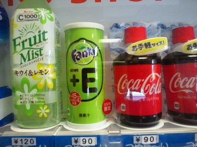 でもって自販機限定という文字が目に入って、つい買ってしまいましたよファンタ・キウイ。これ1本でキウイ1個半分のビタミンEだって。