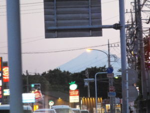 強風でぶっとんだタープのフックを買いに行ったホームセンターの横で、通りの向こうに富士山どーん。