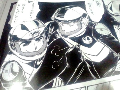 さらに各章ごとに新谷さんへのインタビューが回顧録のように挟まれていて飽きない構成になっています。まあ最近の新谷さんを見たことがなかっただけに、談話している姿を見ると別人のような変貌ぶりですが、とりあえず師匠健在で安堵することが出来ました。あっ、忘れるところでしたがムックの冒頭に第1話の導入部分。そして後半は沢渡・東条・アルダナによるチームバトル・ホークの世界耐久最終戦が途中から最終回まで再録されているのがお買い得です。