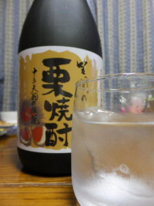 基地の庭掃除をお手伝いして、栗焼酎いただきました。