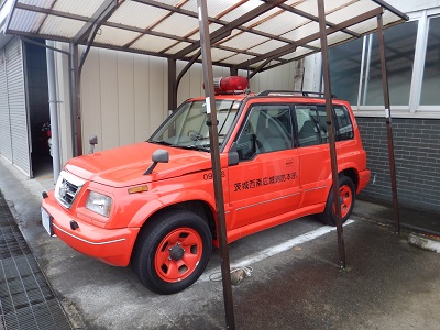 初代の消防指令車は見かけなくなりましたが、二代目は健在です。オーバーフェンダーも含めて赤一色というのは仕様ならではで、けっこう様になっています。昔はホイールまで赤く塗装していたものですけど、あれは鉄ちんだったからこそなんでしょうね。納車時点でアルミホイールなのだから、わざわざ鉄ちんに戻すことも必要なかっただろうし。