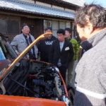 スチールホイールを無造作に車体色とそろえて全塗装してしまうわりには、サイドモールはいっぺんはずして塗装後につけ直しているところが不思議に細かい作業です。20年にわたって、この専用車庫で保管され出動しているのです。