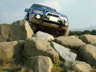 フレームをスキッド材として使うのは初代の特徴ではありますが、段差の下りだからどうにかなる写真です。上りだったらちょっと怪しい。いやそれ以前にこういうところでこんなことするスチルを、いみじくも公人がひけらかすべきではない。