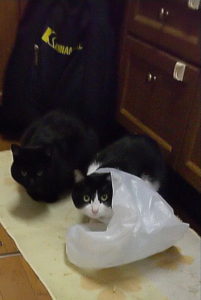 カゴから転がり落ちたコンビニ袋にちょっかい出したら