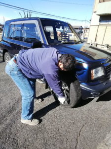 4日風の吹く中、新月サンがタイヤ交換してくれました。