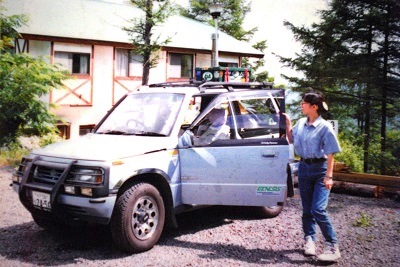 1991年夏、軽井沢。家内・れいんさんと結婚した年の旅行の一コマですが、89年5月に購入したエスクードは1型で8バルブ。5速マニュアルミッションなのでパワー不足は感じませんでしたが、トルクはともかく馬力は82しかない。しかしこの頃すでに量販車は16バルブ化され100馬力の大台に乗って、いわゆるライトクロカンの本領発揮へ向かっていました。それはさておき家内、二十代半ば。これ買ったために結婚が2年ずれ込んだのです。