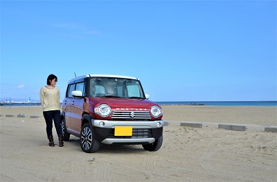海に行きたいか山に行きたいか街に繰り出すかを選択させたところ「霙が工芸用品を買いたいと言ってるからひたちなか。かな」とのことで、北関東道から東水戸道路を経て、ジョイフル本田のクラフト専門店へ出かけ、その足で阿字ヶ浦海岸に向かいますが、駐車スペースとはいえ果敢に砂地に踏み込んでいくので「言っとくがこれはFFだからな」