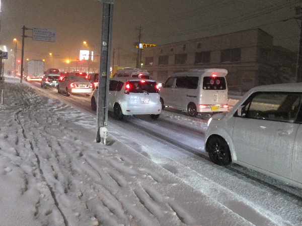 四年前の大雪の時も、ぴくりとも動かない車列が延々と続いてましたわ。