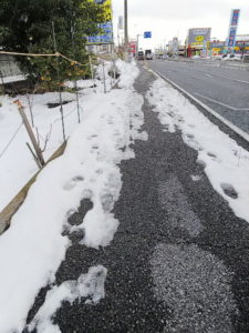 住宅地の路地なんかはコッチコチに氷の塊になってて凄い恐怖・・・