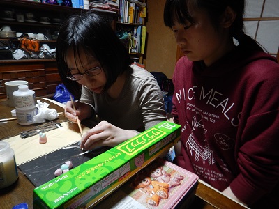 深海生物のメンダコが霙のお気に入りで、これをモチーフにした小物をいろいろと自作しているようなのですが、昔僕が彼女らの前で仮面ライダーのボトルキャップフィギュアを改造したり、ビートチェイサー2000の白バイモデルを製作したりの様子を見ながら、何か自分でも作りたいと考えていたそうです。