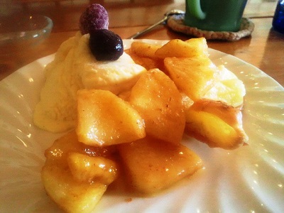 それはそれで、僕にとっては面白いので、良いのです。しかし半端な時間でもあり、朝昼兼用はシチューでもなくオムレツでもなくチキンカレーでもなく、ましてや冷麦でもなく、ブレンドとアップルパイを頼んだところ・・・