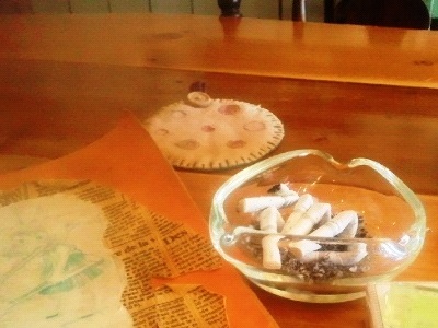 これはびっくり仰天。お品書きの構成といい店内の客用日記帳といい、客層の大勢は女性であろうし、僕が連れてきてもらった部下も喫煙しない人なので、これまで煙草を出す必然を無しとしていたのです。しかも他のお客がいない。あー、早起きじゃないけど雪下ろししながらコーヒーとブランチ・・・とか思い立ったのが吉でした。そうこうしているうちに、やはり大学生らしき女の子やら日頃は勤めと思しき女の子がちらほらとやってくるようになったので、おぢさんは撤収にかかるのでした。
