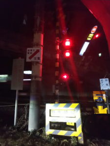 遮断棹が下りきったら、警報音が物凄く小さくなるんですよ。