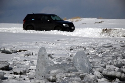 片道100㎞、と言うと、道内では都市部は別として、わりと普通に走る距離でもありますし、仕事ではあまり行かず(新鮮みがないので)、そこそこの景色が撮れそう、ということもあって、ちょうどジュエリーアイスの時期なので、海岸へ行ってみました。