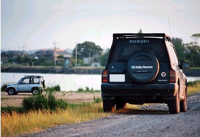 ヘリーハンセンの登場記事は、その頃群雄割拠していた四駆雑誌のなかで、今は無くなってしまったオフロードスピリッツが唯一カラー掲載していました。それがいわゆる空色のクルマ。ディーラーで見たカタログモデルの野暮ったい車体色(実はいまその色の幌車にも乗っているわけだが)とは裏腹の、でもこれ自分が乗っているジムニーと同じ色だよ。なにそれ、これだけのことで車のイメージがこんなに変わるのかよ。という驚きを見るのでした。