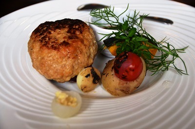 ハンバーグはプレーンでほんのりと味付けしてあり、こね具合も相まって、玉ねぎベースにワインを加味したソースが相乗効果を醸しだします。それに負けないほど眼でも舌でも楽しませてもらえるのが、自ら育てている温野菜。設えが大胆でいて細やかです。これはつい、ギャルソン君に尋ねてしまいます。その場でわかりやすく教えていただくのがまた楽しい。価格のことを書くのは粋ではないんですが、ランチとはいえ五種類ほどの献立すべて千円税込は頑張ってるなあと思います。