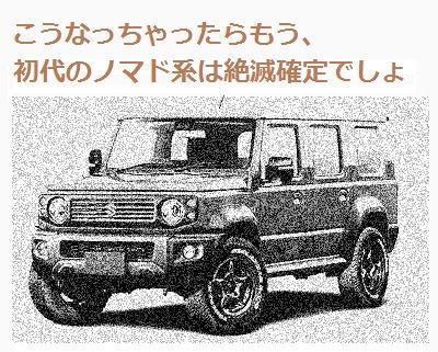 しかし今回、1500を搭載するシエラは間違いなく注目株。あくまでもジムニーは軽自動車規格であるとしても、です。一般視線から見れば、テンロクエスクード・ショートの再来と言ってもいいからです。これに4ドア・・・じゃなくてもいいから5人乗れるロングなんか出てきちゃったら、今まで「他に乗りたいのが無い」と、ノマドシリーズに拘ってきた人々にとってはどうか。もう救いの手ですよねえ。なんだか初代絶滅の日のシナリオが見えてしまって密かに哀しい。