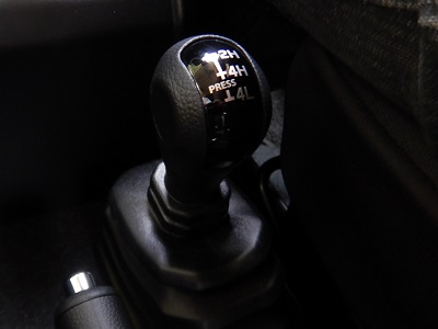 「トランスファーレバーがついてますねー。お姉ちゃんのハスラーと違って床が遮られてるけど、そんなに狭くないですね」