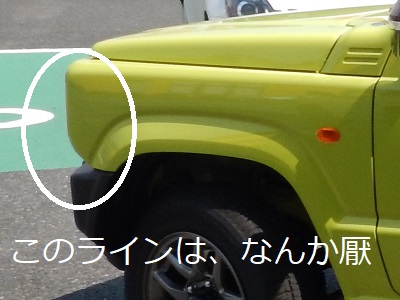 クロスメンバーを増やし「筋交い」も加えて剛性を上げたとか、R06Aに換装したとかいろいろエポックがあるけれど、数キロの試乗ですからそれらの能力は十分に発揮できません。速度を上げてちょこまかとステアリング操作しても、うちのJB23のようなふらつきはない。大柄になった印象はJB23で既に感じていたので、ここまでくるとトレッド規格の縛りがもったいない気がします。が、シエラは県内で3台しか試乗車が無いというので、展示車も見ることができませんでした。